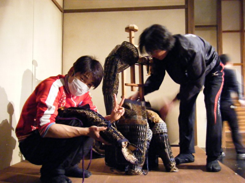最後に、鎧の組立中の竹田くんと中村くんです。